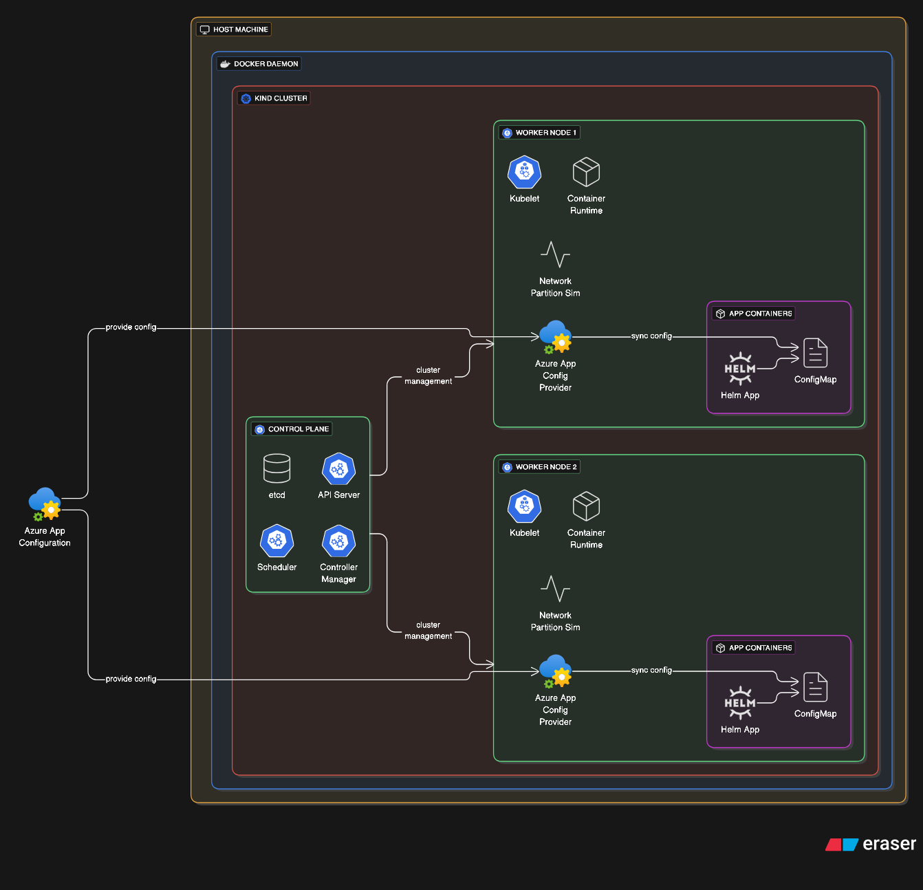 To a less extreme, one can leverage KIND to test out helm deployments of complex applications and provide integration testing for charts that have multiple properties that can be tweaked to ensure all scenarios are valid and functional. Of course, provider specific integrations such as AzureAppConfigurationProvider that links Azure App Config to a Kubernetes native ConfigMap requires more setup on the local cluster level.